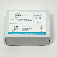 SCHISTOSOMA ICT IgG-IgM is a single use unitary test for a qualitative diagnostic. It is based on the principle of the homogeneous sandwich (immunological reaction of two same antigen epitopes with the two binding sites of a bivalent antibody).