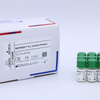 Product Summary:BIOPHEN™ V-L Control Plasma (223405) is a pathological human plasma for the quality control of Factor V-Leiden assays by clotting method. Manufactured by HYPHEN BioMed. Intended UseThe BIOPHEN™ V-L Control Plasma kit consists of undiluted lyophilized human plasma, titrated at one concentration of Factor V-Leiden (FV-L), for the quality control of FV-L assay. It is titrated and optimized for the quantitative assay of FV-L by clotting method. Summary and ExplanationTechnical Activated Protein C plays a role of regulator in the coagulation process by specifically inactivating activated Factors V (Va) and VIII (VIIIa), in the presence of co-factors. The resistance phenomenon to activated Protein C (APC) is due in more than 90% of cases to the R506Q mutation of Factor V called “Factor V Leiden”. This mutation in Factor V exon 10 (1691 G → A) substitutes arginine at position 506 by glutamine, prevents this site cleavage by APC. This control is proposed for the quality control of clotting assay of FV-L in plasma (HEMOCLOT™ Quanti. VL). Clinical FV-L mutation is the most common hereditary thrombophilia risk factor. Its prevalence is about 5% in Caucasian populations. Patients carrying FV-L mutation have an increased risk of venous thrombosis, 3 to 7 fold in heterozygotes and up to 80 fold in homozygotes. This genetic anomaly can be evidenced by clotting assay in the presence or absence of APC. ReagentsC Control: Undiluted lyophilized human plasma, containing a titrated quantity of FV-L of approximately 40% (plasma presenting APC resistance). 12 vials of 0.5 mL. Control plasmas contain stabilizing agents. The control concentrations may vary slightly from one batch to another. For the assay, see the exact values indicated on the flyer provided with the kit used.