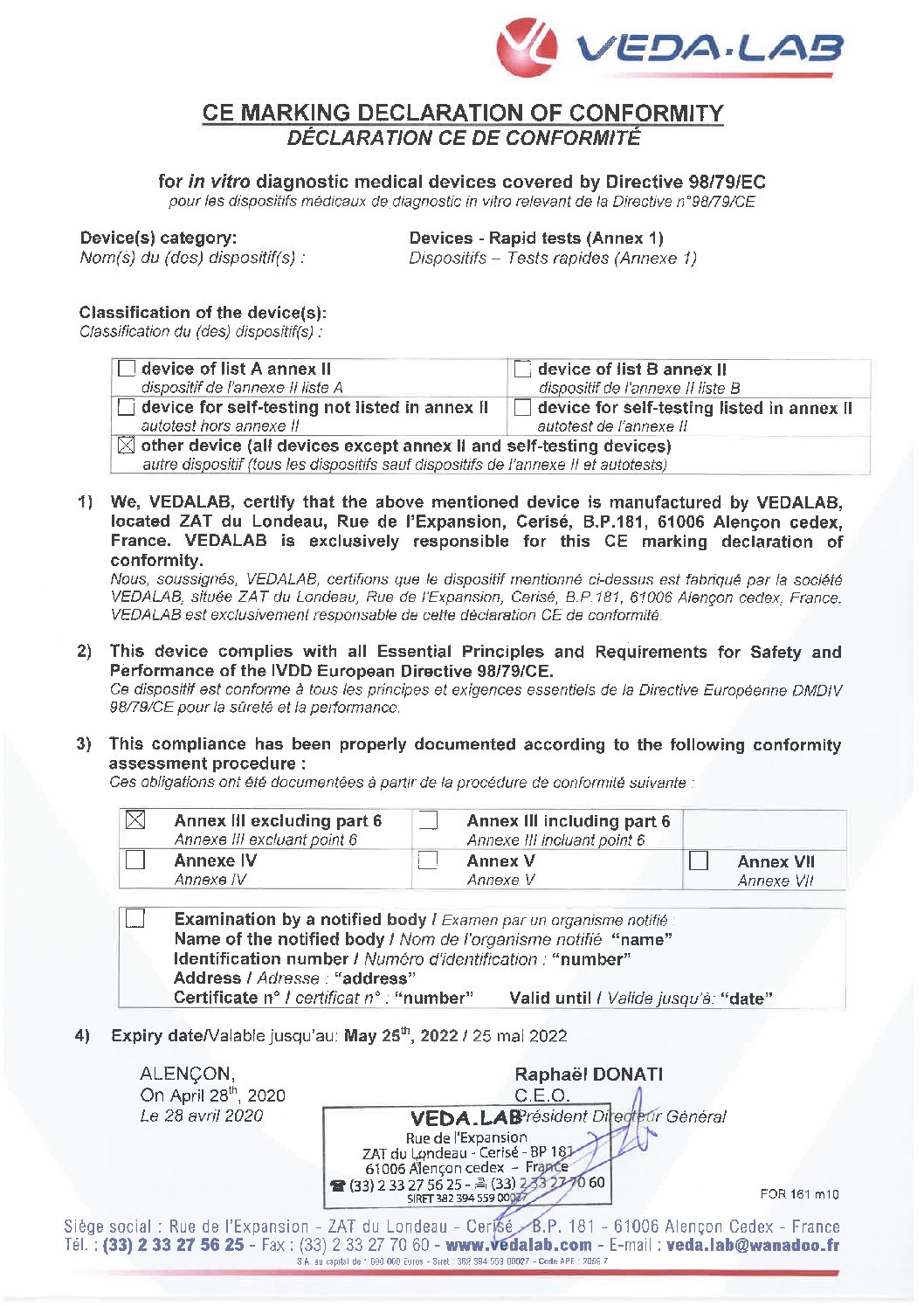 Therefore there is no requirement or need for additional registration with the MHRA and it is fully authorised to be sold in the UK in accordance with the IVD Directive (IVDD 98/79/EC).