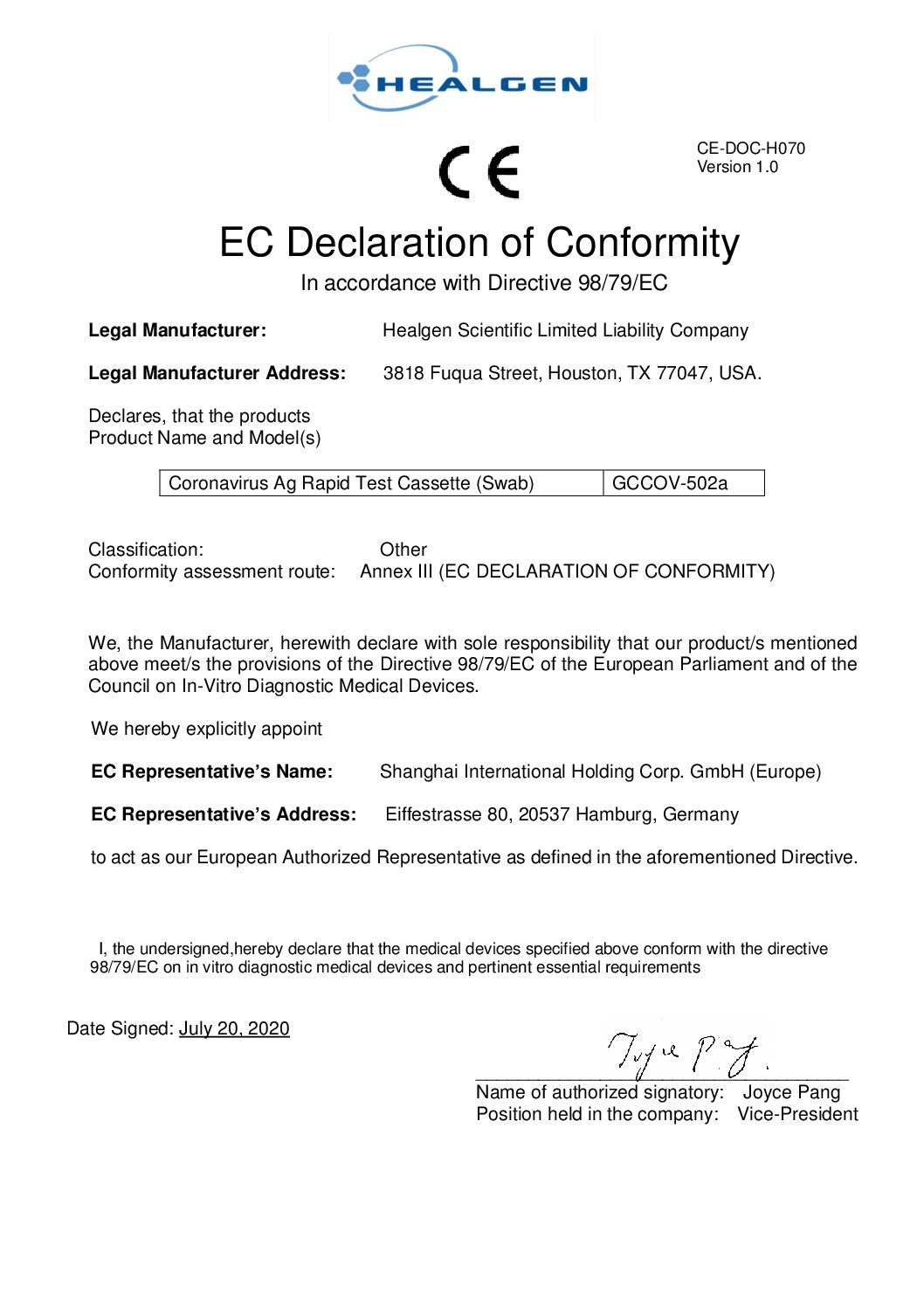 - ISO13485: Healgen manufacture in accordance with their ISO13485 Quality Management accreditation. They also hold many additional ISO accreditations.