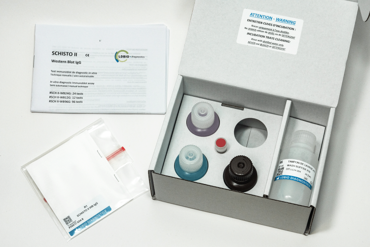 In order to meet this demand, LDBIO Diagnostics developed a reliable test based on the Western Blot technique. Associated with highly sensitive natural antigens (Schistosoma mansoni and Schistosoma haematobium), the SCHISTO II Western Blot IgG test is a robust confirmation technique of classical screening tests.
