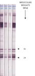 Toxocara Western Blot IgG (96T) (TXA-WB96G) is a single use qualitative test of serological IgG diagnosis by Immunoblot Assay of toxocariasis intended for confirmatory testing of a positive or equivocal result obtained through classic screening tests. It can be performed on sera, cerebrospinal fluid (CSF) or aqueous humour. Kit of 96 tests.