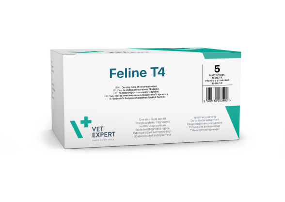 – Vet Expert Feline T4 is revolutionary screening test for older cats – introducing prophylactic thyroxine measurements in older and/or sick cats allows to detect the disease before characteristic symptoms set in (e.g. severe weight loss, hyperactivity, neck deformations).